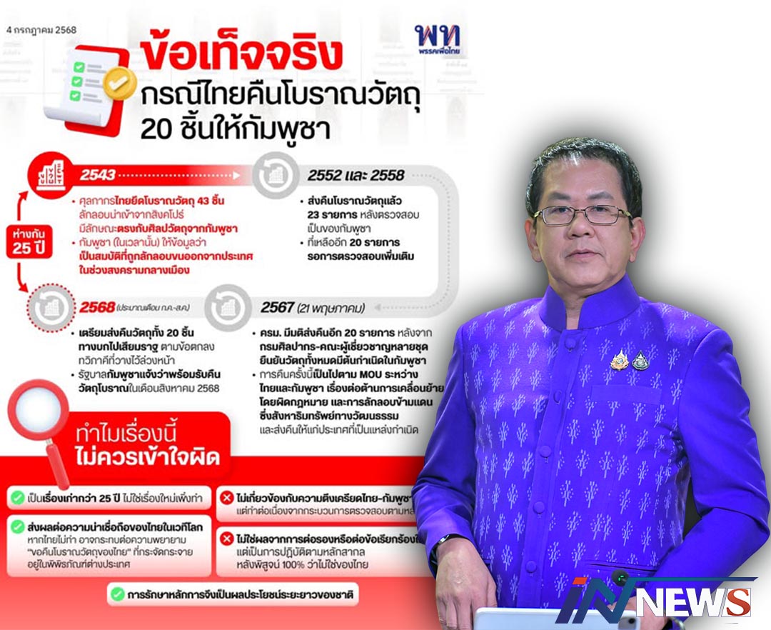 โฆษกรัฐเตือนเกรียนคีย์บอร์ด'เบาได้เบา' ปั้นข่าววธ.ยกวัตถุโบราณ20ชิ้นให้เขมร