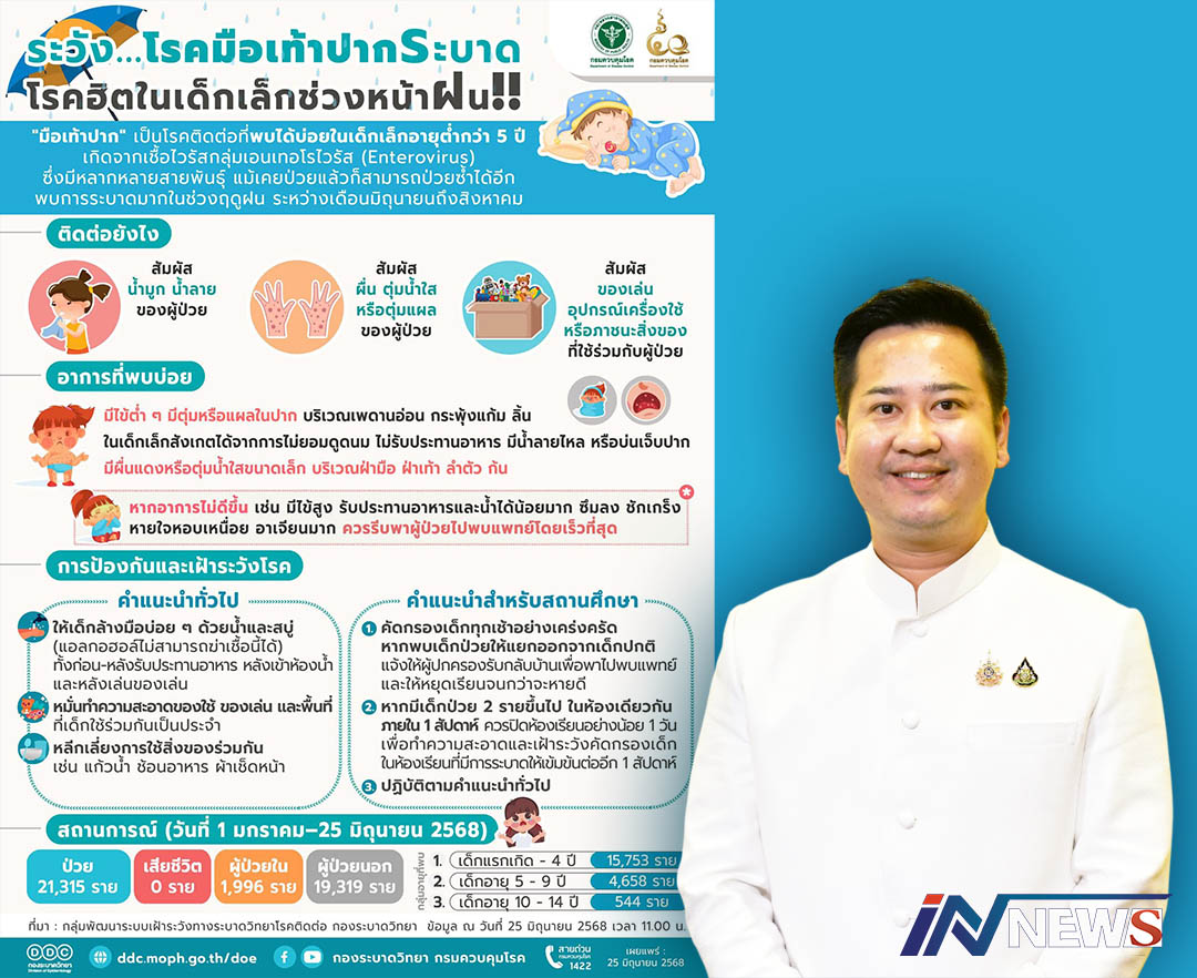เตือนเด็กเล็กต้องระวัง! 'โรคมือเท้าปาก' ระบาดมากช่วงฤดูฝนพบแล้ว2.1หมื่นคน