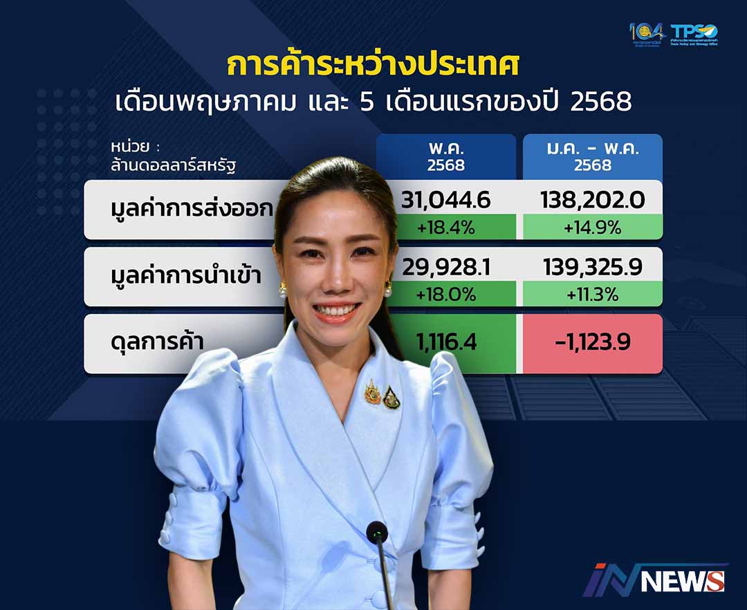 ไทยทำสถิติส่งออกเดือนพ.ค.พุ่ง18.4 % สะท้อนความแกร่งการผลิต-การค้าไทย