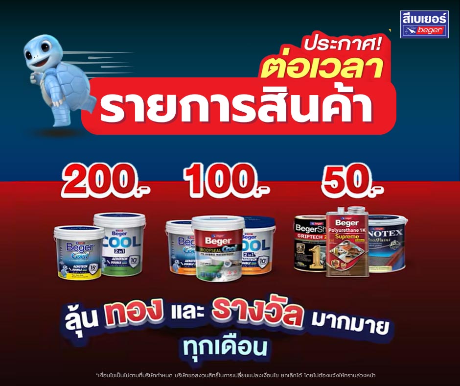 กรุงเทพฯ-ผลตอบรับแรงไม่หยุด! เบเยอร์ (Beger) ผู้นำนวัตกรรมสีและวัสดุก่อสร้าง ประกาศขยายเวลาแคมเปญสุดร้อนแรง “Beger...