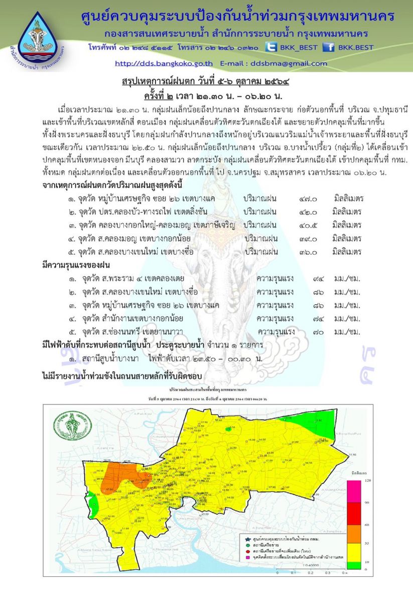 กรุงเทพฯสถานการณ์ประจำวันที่ 6 ตุลาคม 2564 ในพื้นที่กรุงเทพฯและปริมณฑล