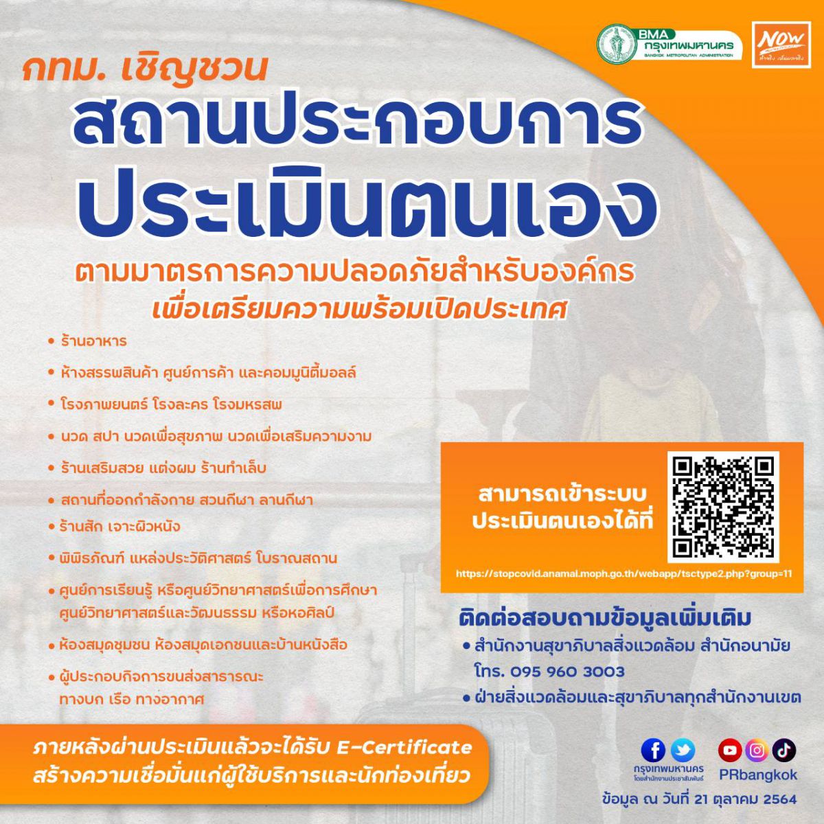 กทม.ย้ำผู้ประกอบการต้องประเมินตนเอง ผ่าน'Thai Stop COVID Plus'