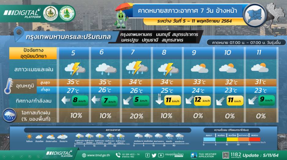 สำหรับสภาพอากาศในวันนี้รายงานสถานการณ์วันที่ 5 พฤศจิกายน 2564 ดังนี้