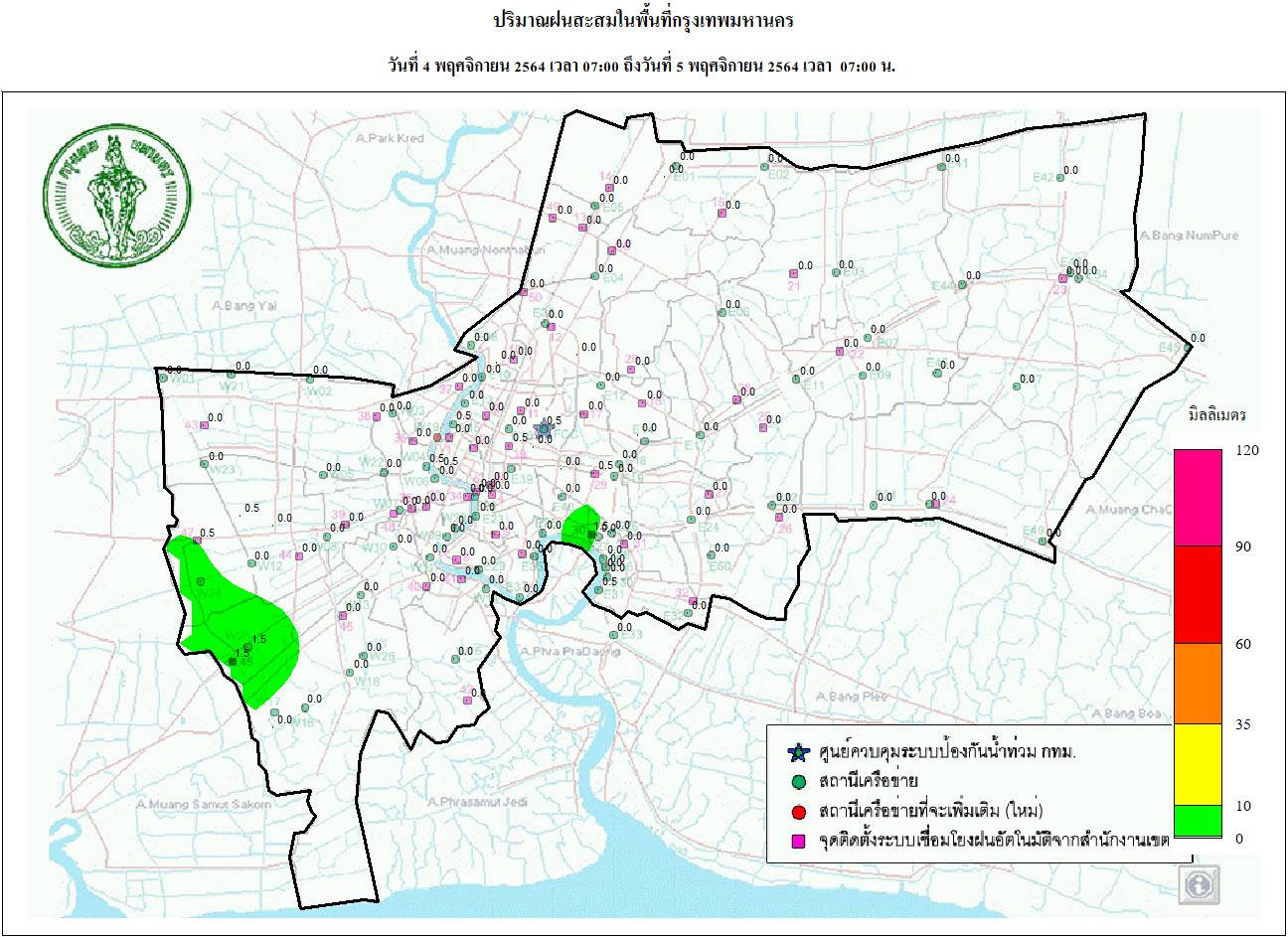 ในรอบ 24 ชั่วโมงที่ผ่านมา (07.00 น.) : พื้นที่กรุงเทพมหานครมีเล็กน้อย ปริมาณฝนรวมสูงสุดที่จุดวัดสำนักงานเขตคลองเตย 1.5 มม. สำนักงานเขตบางบอน 1.5 มม. และจุดวัดสำนักการระบายน้ำ เขตดินแดง 0.5 มม.