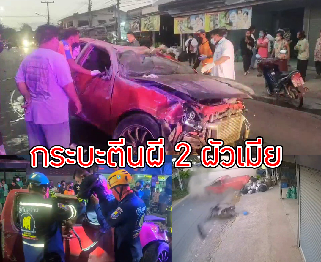 กล้องวงจรปิดจับภาพกระบะตีนผี2ผัวเมีย ชี้พลิกคว่ำหลายตลบพุ่งชนร้านค้า