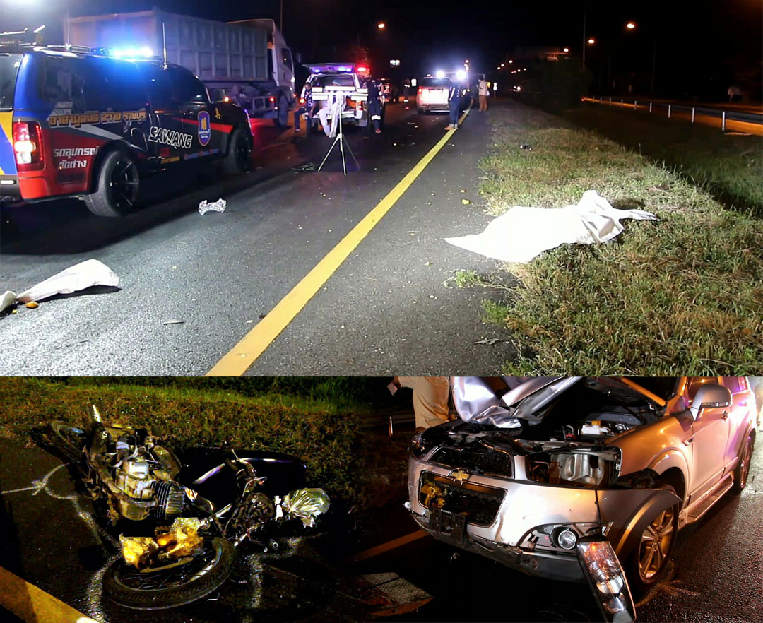 หนุ่มโพธารามควบกระบะชนจยย.ดับสยอง กลางแยกสี่โพธารามขาเข้ากทม.