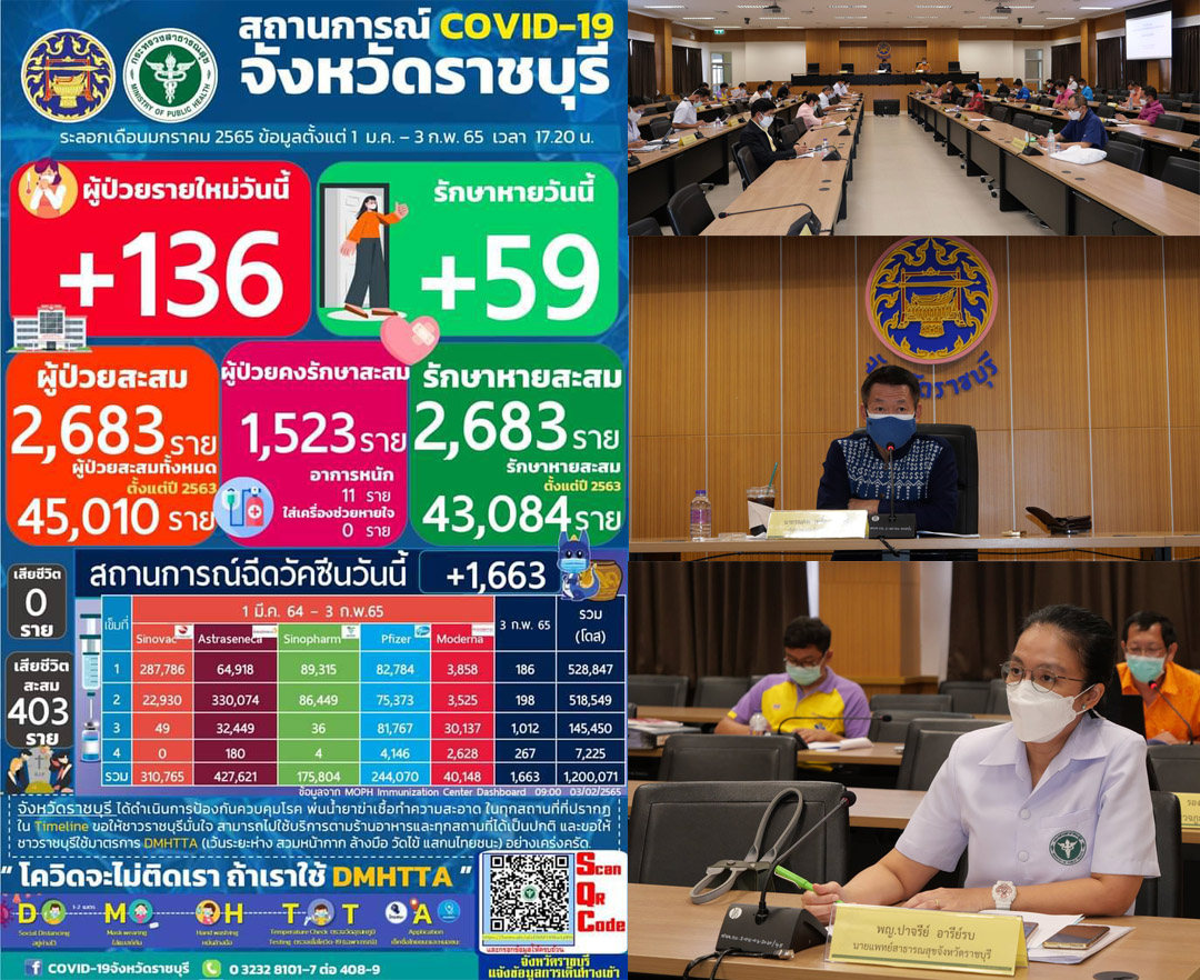 โดยสถานการณ์โควิด-19 ของจ.ราชบุรี พบมีผู้ป่วยติดเชื้อรายใหม่ 136 คน ทำให้มียอดผู้ป่วยสะสมรวมเป็น 45,010 ราย ส่วนกรณีนักเรียนโรงเรียนธรรมจารินี อ.ปากท่อ สนง.สาธารณสุข จ.ราชบุรี รายงานข้อมูล ณ วันที่ 2 ก.พ.65 พบมีเด็กนร.ป่วยสะสม 472 คน ทั้งนี้เด็กนร.ที่รักษาหายแล้ว ได้ทยอยนำกลับโรงเรียน อีกทั้งได้จัดตั้งโรงเรียนธรรมจารินี เป็นรพ.สนาม ชั่วคราว เพื่อรองรับผู้ป่วยรายใหม่ เนื่องจากโรงเรียนมีความพร้อมทั้งด้านอาคาร สถานที่ พร้อมให้เคร่งครัดมาตรการป้องกันควบคุมโรคในโรงเรียน