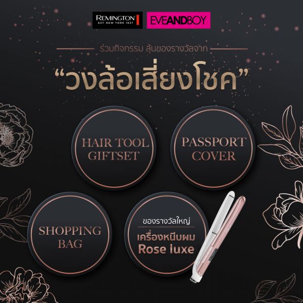 ผลิตภัณฑ์อุปกรณ์จัดแต่งทรง ผมเรมิงตัน (Remington) ผู้นำนวัตกรรมดูแลเส้นผมชั้นนำจากนิวยอร์ก จับมือ อีฟแอนด์บอย (EVEANDBOY) ร้านเครื่องสำอางมัลติแบรนด์ชั้นนำสัญชาติไทย จัดงาน Grand Opening REMINGTON X EVEANDBOY พร้อมเชิญสาวๆ ร่วมสัมผัสประสบการณ์ใหม่กับมหัศจรรย์ความสวยแบบลักซ์ชัวรี่ ของเครื่องหนีบผมเรมิงตัน รุ่น Rose Luxe สินค้า Limited Edition เฉพาะที่ EVEANDBOY ที่เดียว