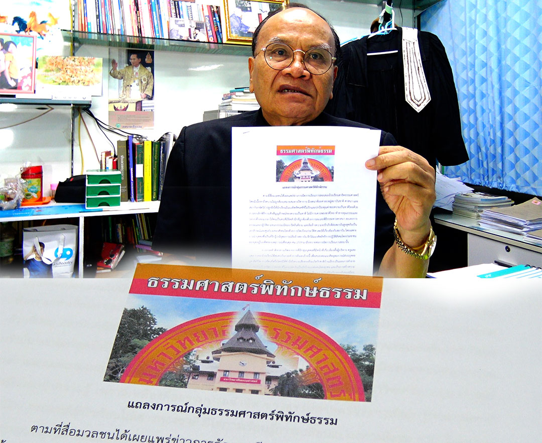 กลุ่มธรรมศาสตร์พิทักษ์ธรรม จึงขอเรียกร้องให้ผู้บริหารมหาวิทยาลัยธรรมศาสตร์และ หน่วยงานภาครัฐตรวจสอบข้อเท็จจริงโดยเร่งด่วน มิให้มีการกระทําดังกล่าวเกิดขึ้นอีกต่อไป และ สอบสวนหาผู้เป็นตัวการและแนวร่วมเพื่อลงโทษทางวินัยและกําจัดให้พ้นสิ้นจากระบบการศึกษาของ โรงเรียนและมหาวิทยาลัย การเพิกเฉยหรือมิให้ความสําคัญย่อมเท่ากับให้การสนับสนุนต่อขบวนการ ทําลายชาติที่อาศัยแฝงตัวดําเนินการครั้งนี้ การพยายามสร้างชื่อเสียงและความเจริญให้กับ มหาวิทยาลัยธรรมศาสตร์ด้วยการสะสมเงินทุน พัฒนาทางวัตถุ และการขอความร่วมมือร่วมใจจากศิษย์ เก่าย่อมไร้ประโยชน์และเทียบมิได้หากประเทศชาติต้องเสียหายวอดวายจากการปล่อยปละละเลยของ ท่าน หน้าที่ของคนไทยทุกคนคือการปกป้องชาติ ยึดมั่นศาสนา ภักดีสถาบัน และหน้าที่ของมนุษย์คือ การสร้างความดี สร้างคุณประโยชน์ให้ส่วนรวม เมื่อพ้นจากความเป็นมนุษย์ตามกาลเวลาของแต่ละคนก็ ย่อมได้รับการสรรเสริญสืบไป