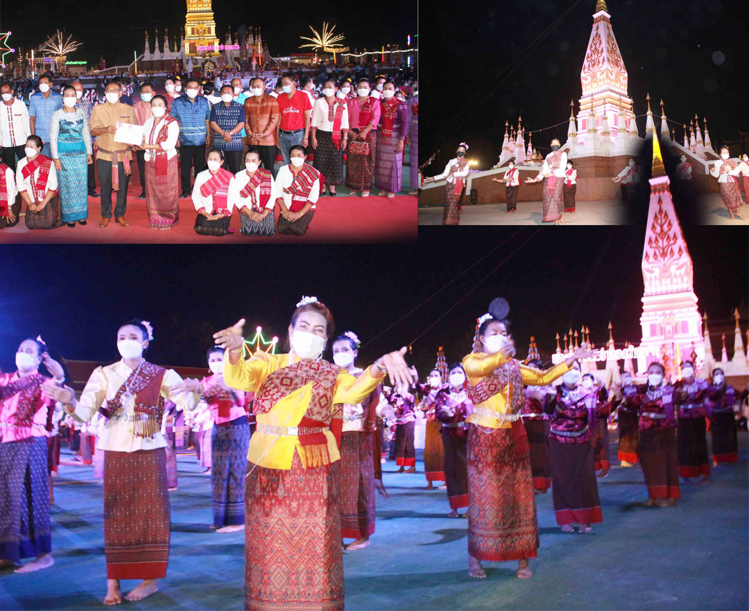 กลุ่มสตรีห้วยเม็กกว่าพันชีวิตรำสักการะ องค์พระธาตุพนมจำลองเป็นสิริมงคลปี65