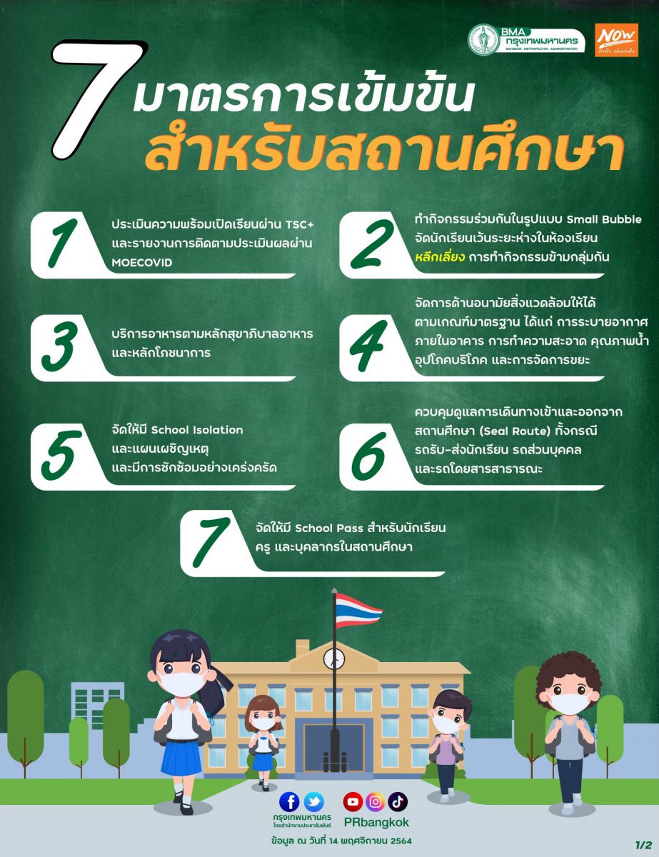 กทม.เน้นย้ำให้สถานศึกษาเคร่งครัดโควิด ขอความร่วมมือปฏิบัติตาม6มาตรการ