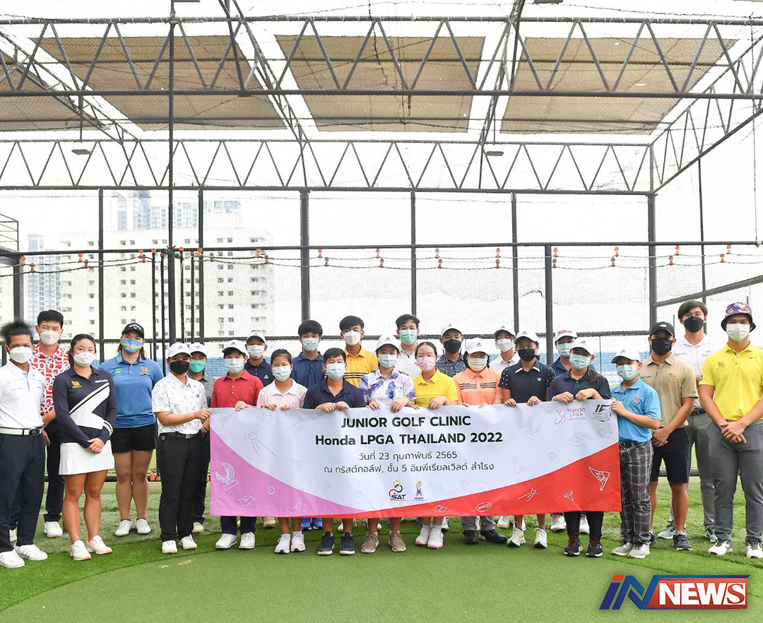 สมุทรปราการ-23 กุมภาพันธ์ 2565-ฮอนด้า แอลพีจีเอ ไทยแลนด์ 2022 และ การกีฬาแห่งประเทศไทย (กกท.) จัดกิจกรรม “ฮอนด้า แอลพีจีเอ ไทยแลนด์ จูเนียร์ กอล์ฟ คลินิก” เปิดโอกาสให้เยาวชนที่มีใจรักในกีฬากอล์ฟซึ่งมีอายุระหว่าง 12-15 ปี ได้มีโอกาสเรียนรู้กับโปรกอล์ฟชื่อดังในคลาสการฝึกซ้อมแบบเอ็กซ์คลูซีฟ และเป็นการเติมเต็มความ ฝันเพื่อก้าวสู่การเป็นนักกอล์ฟอาชีพในอนาคต ณ ทรัสต์กอล์ฟ ศูนย์ฝึกซ้อมและพัฒนาศักย ภาพกีฬากอล์ฟด้วยเทคโนโลยีระดับโลก ชั้น 5 ศูนย์การค้าอิมพีเรียลเวิลด์ สำโรง สมุทรปราการ