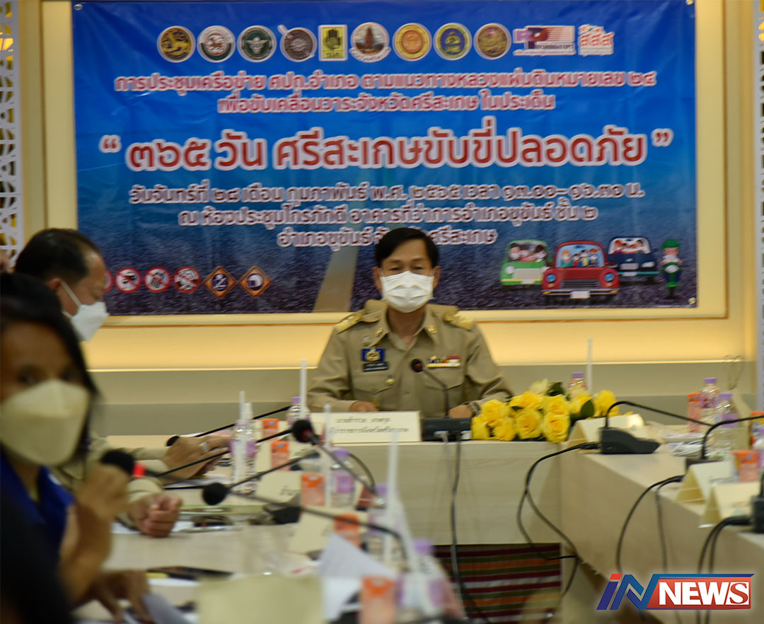 เมื่อวันที่ 28 กุมภาพันธ์ 2565 เวลา 13.30 น. ณ ห้องประชุมที่ว่าการอำเภอขุชันธ์ จังหวัดศรีสะเกษ นายสำรวย เกษกุล รองผู้ว่าราชการจังหวัดศรีสะเกษ ได้เป็นประธานการประชุมติดตามการขับเคลื่อนงานป้องกันและลดอุบัติเหตุทางถนนในพื้นที่ตามแนวทางหลวงแผ่นดิน หมายเลข 24 โดยเครือข่าย ศปถ.อำเภอ ทล.24 ประกอบด้วย 5 อำเภอ ได้แก่อำเภอกันทรลักษ์ อำเภอขุขันธ์ อำเภอขุนหาญ อำเภอไพรบึง และอำเภอเบญจลักษ์ และมีนายอรรถพล อรรคบุตร นายอำเภอขุขันธ์ นายสุกิจ เหลืองสกุลไทย นายอำเภอกันทรลักษ์ นายบุญประสงศ์ นวลสายย์ หัวหน้าสำนักงานป้องกันและบรรเทาสาธารณภัยจังหวัดศรีสะเกษ ผู้แทนนายอำเภอ ผู้แทนNode Flagship สสส.จังหวัดศรีสะเกษและหน่วยงานที่เกี่ยวข้องร่วมประชุมในครั้งนี้ และนำเสนอผลการข้บเคลื่อนวาระจังหวัดศรีสะเกษ ประเด็น 356 วัน ศรีสะเกษขับขี่ปลอดภัย นำเสนอผลการดำเนินงานของหน่วยจัดการ Node Flagship สสส.จังหวัดศรีสะเกษ และการแลกเปลี่ยนแนวทางการแก้ไขปัญหาจากภาคียุทธศาสตร์ 5E ( 5 เสาหลัก) ทั้งนี้เพื่อติดตามผลการขับเคลื่อนงานป้องกันและลดอุบัติเหตุทางถนนของ ศปถ.อำเภอ ตามแนวทางหลวงแผ่นดิน หมายเลข 24 จำนวน 5 แห่ง เพื่อให้ ตปถ.อำเภอ ได้รายงานจุดเสี่ยงที่ไม่สามารถดำเนินการเองได้ และส่งต่อไปยัง ศปถ. จังหวัด เพื่อมอบหมายหน่วยงานที่รับผิดชอบได้ดำเนินการแก้ไขจุดเสี่ยง และเพื่อให้ เครื่อข่าย ศปถ.อำเภอ ทั้ง 5 แห่ง ได้แลกเปลี่ยนเรียนรู้บทเรียนจากการดำเนินงานในพื้นที่เพื่อเกิดการถ่ายโยงความรู้ระหว่างกันต่อไป