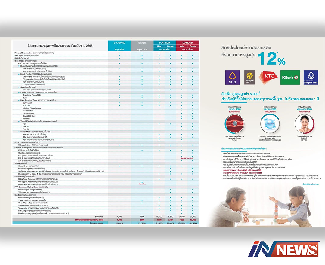 “โรงพยาบาลนวเวช” โรงพยาบาลย่านเกษตรนวมินทร์ รัชดา-รามอินทรา ที่มุ่งให้บริการทางการแพทย์ที่ดีและเข้าถึงง่าย พร้อมดูแลสุขภาพของทุกคนอย่างเข้าอกเข้าใจ ด้วยบริการทางการแพทย์ที่ครอบคลุมทุกช่วงวัย และทีมแพทย์เฉพาะทาง จัดแพ็กเกจ “ตรวจสุขภาพพื้นฐาน” สำหรับผู้ที่ต้องการเช็คอัพความแข็งแรงของร่างกาย รวมทั้งค้นหาความผิดปกติในการทำงานของอวัยวะต่าง ๆ อาทิ ตรวจการทำงานของไต ตรวจการทำงานของตับ ตรวจการทำงานของต่อมไทรอยด์ ตรวจหาสารบ่งชี้มะเร็ง รวมไปถึงการตรวจคัดกรองโรคหลอดเลือดและโรคหัวใจ โดยมอบส่วนลดสูงสุดกว่า 60% ซึ่งมีโปรแกรมการตรวจตั้งแต่ 16-44 รายการ สามารถชื้อผ่านช่องทางออนไลน์ได้ที่ https://bit.ly/3sj38vj เปิดขายตั้งแต่วันนี้ถึง 31 มีนาคม 2565 และสามารถใช้บริการได้ถึงวันที่ 30 กันยายน 2565 สอบถามและนัดหมายล่วงหน้าได้ที่ โรงพยาบาลนวเวช โทร. 0 2483 9999 I www.navavej.com