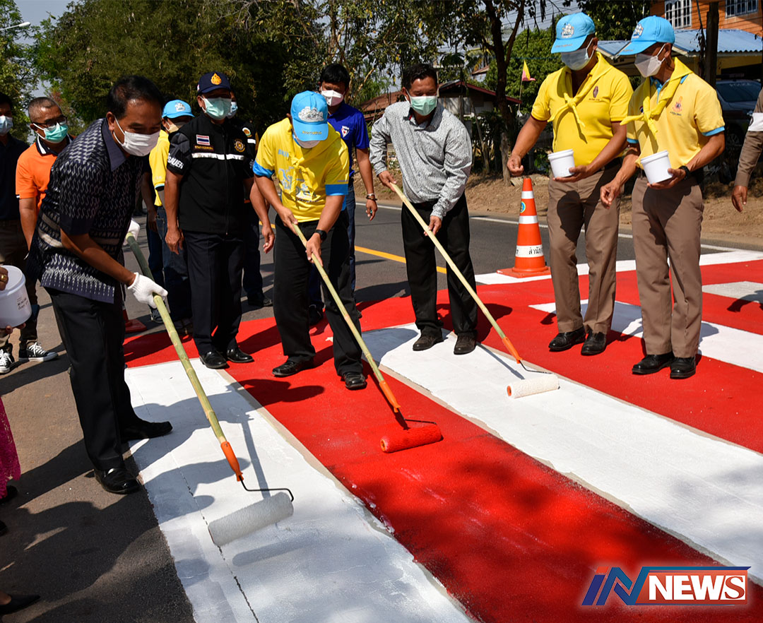 ศรีสะเกษชูความปลอดภัยทางม้าลายทาสีรณรงค์ลดอุบัติเหตุอุทุมพรพิสัย
