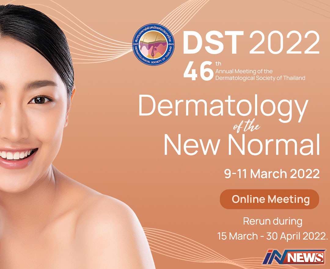 สมาคมแพทย์ผิวหนังแห่งประเทศไทย ขอเชิญแพทย์ผู้สนใจเข้าร่วมการประชุมวิชาการและการประชุมใหญ่สามัญประจำปี 2565” ครั้งที่ 46 ของสมาคมแพทย์ผิวหนังแห่งประเทศไทย ทางออนไลน์ “Dermatology of The New Normal” ในระหว่างวันที่ 9- 11 มีนาคม 2565 ในรูปแบบ Online Meeting ผู้ที่ต้องการเข้าร่วมและเป็นสมาชิกสมาคมฯ สามารถเข้ามาลงทะเบียนได้ที่เว็บไซต์ www.dst.or.th หรือโทรศัพท์ 090 -991 0029