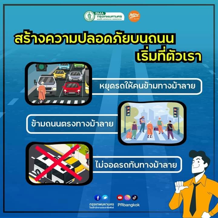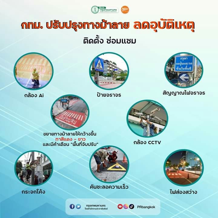 นายประพาส เหลืองศิรินภา ผู้อำนวยการสำนักการจราจรและขนส่ง กทม. กล่าวถึงความคืบหน้าการเพิ่มความปลอดภัย ในการข้ามถนนของประชาชนบริเวณทางข้ามว่า กรุงเทพมหานคร โดยสำนักการจราจรและขนส่ง ได้เพิ่มความปลอดภัยในการข้ามถนนของประชาชนบริเวณทางข้าม (ทางม้าลาย) ในพื้นที่กรุงเทพฯ ด้านกายภาพ โดยติดตั้งสัญญาณไฟกระพริบเตือนทางข้ามไปแล้ว จำนวน 896 จุด และติดตั้งสัญญาณไฟจราจรทางข้ามชนิดกดปุ่มที่มีสภาพบังคับแสดงสัญญาณเขียว เหลือง และแดง ไปแล้ว 240 แห่ง ซึ่งในปี 2565 สำนักการจราจรและขนส่ง มีแผนจะติดตั้งสัญญาณไฟกะพริบเตือนทางข้ามเพิ่มเติมอีก 50 แห่ง และติดตั้งสัญญาณไฟจราจรทางข้ามชนิดกดปุ่มเพิ่มเติมอีก 100 แห่ง รวมทั้งพัฒนาและติดตั้งระบบตรวจจับผู้ฝ่าฝืนกระทำผิดไม่หยุดรถให้คนข้าม หรือจอดรถกีดขวางทางข้าม โดยใช้ระบบกล้องโทรทัศน์วงจรปิด (CCTV) บริเวณทางแยกและทางข้ามที่ติดตั้งสัญญาณไฟจราจรชนิดกดปุ่ม ซึ่งจะประสานสถานีตำรวจนครบาลท้องที่ เพื่อดำเนินการอย่างเป็นระบบให้ครอบคลุมพื้นที่กรุงเทพฯ