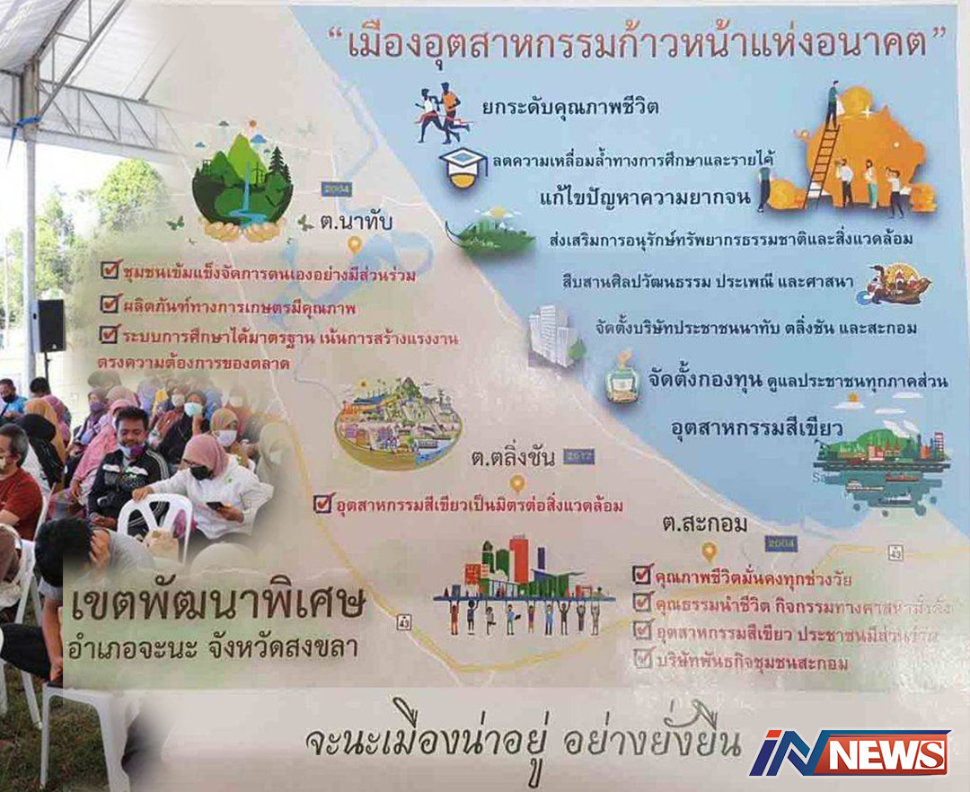 ผู้สื่อข่าวรายงานว่า เมื่อเร็วๆนี้ ได้มีกลุ่มประชาชนในพื้นที่ 3 ตำบลของ อ.จะนะ ได้แก่ ต.สะกอม,ตลิ่งชัน และ นาทับ ได้เดินทางไปยื่นหนังสือให้กับ พล.อ.ประยุทธ์ จันทร์โอชา นายกรัฐมนตรี ผ่านผู้ว่าราชการจังหวัดสงขลา โดยมี เจ้าหน้าที่ศูนย์ดำรงธรรม เป็นตัวแทนในการรับหนังสือ จากฝ่ายที่ สนับสนุนต้องการให้โครงการเมืองต้นแบบที่ 4 “มั่นคง มั่งคั่ง ยั่งยืน” หรือ “เมืองอุตสาหกรรมแห่งอนาคต” เกิดขึ้นโดยไม่ชักช้า