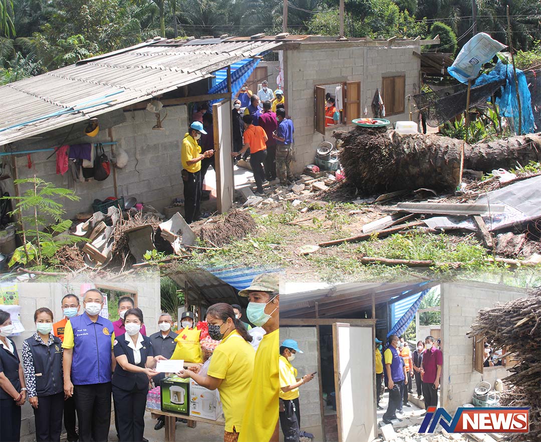 สุราษฎร์ฯร่วมเหล่ากาดชาด - ปภ.ลงพื้นที่ ช่วยผู้ประสบวาตภัยต้นปาล์มฯทับบ้าน