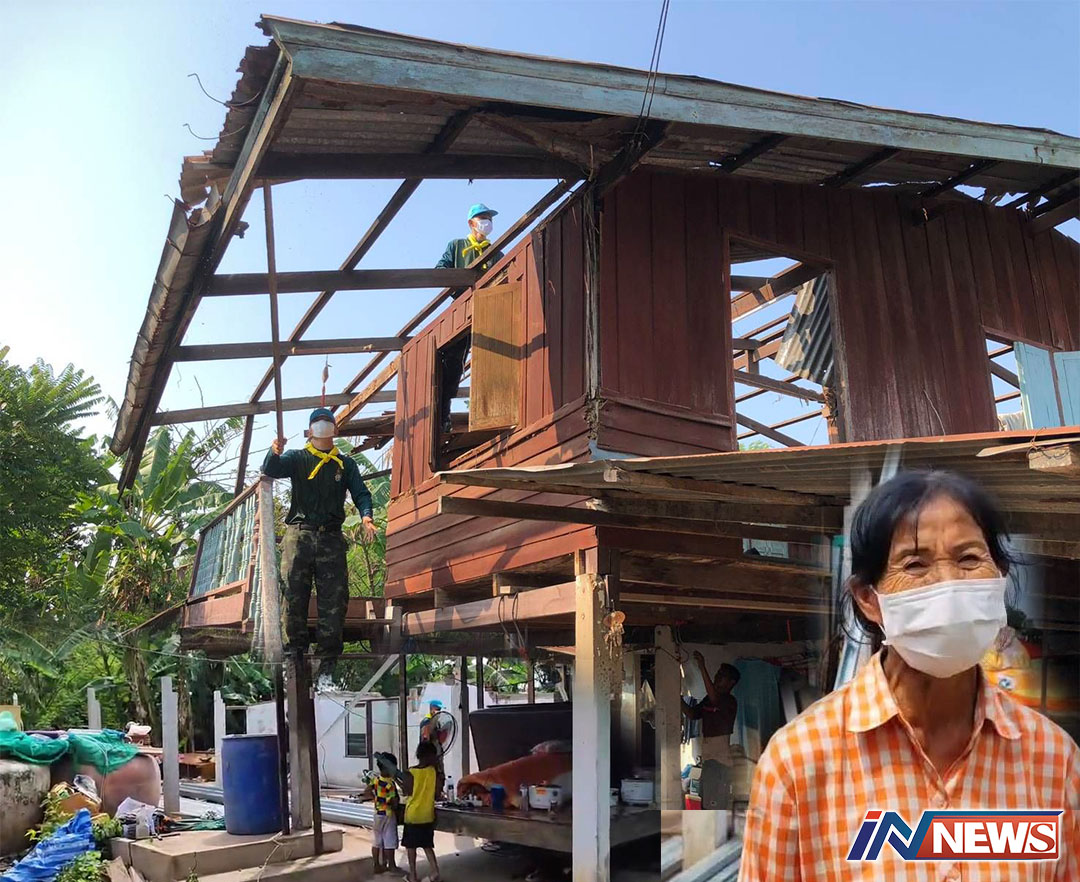 ป้าวัย68ปีตื้นตันร่ำไห้ทหารช่วยสร้างบ้าน หลังจากอาศัยอยู่แบบผุพังมานาน