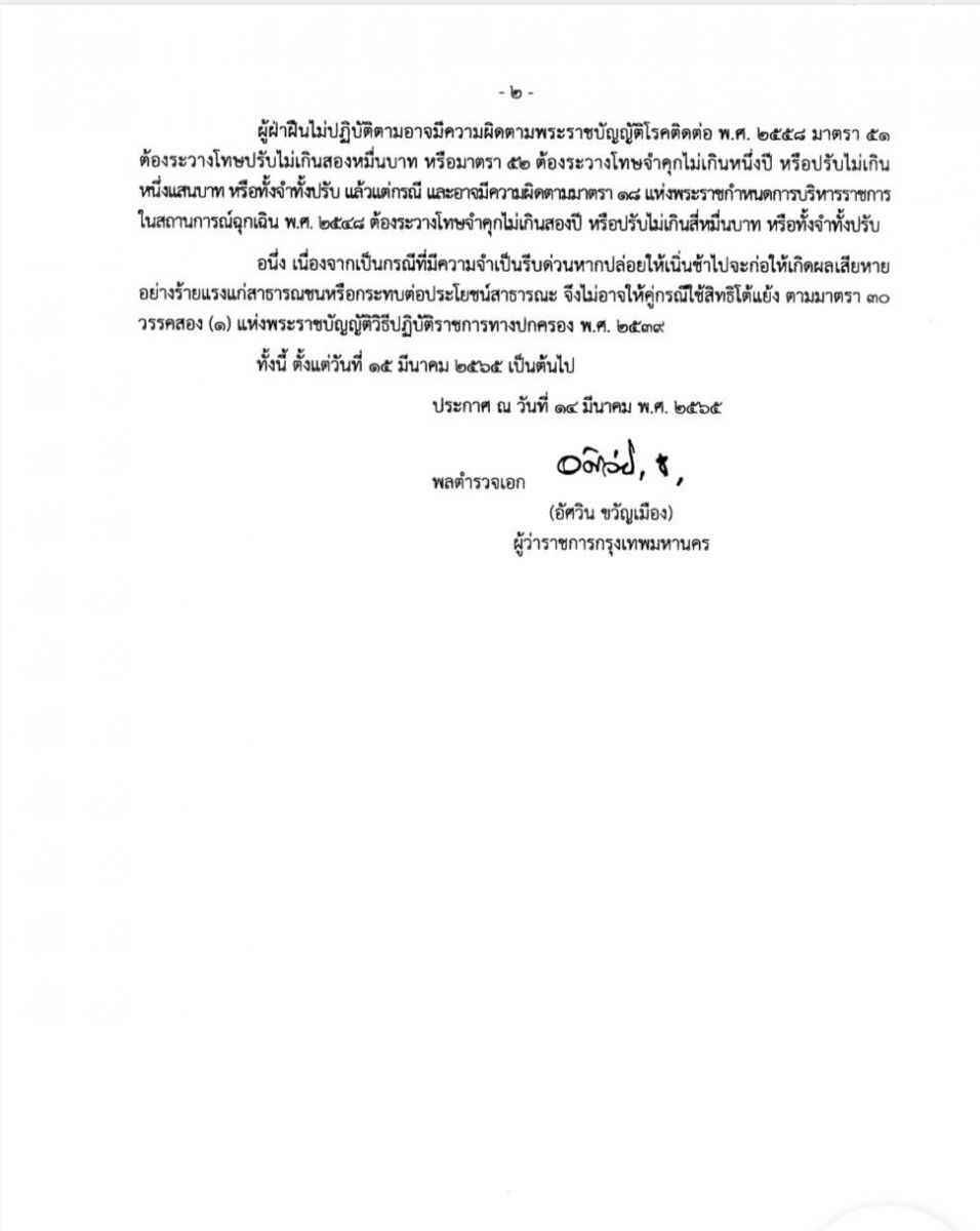 นอกจากนี้ ที่ประชุมได้เน้นย้ำให้ผู้เกี่ยวข้องเร่งสร้างความเข้าใจให้ประชาชนรับทราบเกี่ยวกับการออกประกาศกรุงเทพมหานครฯ ฉบับที่ 51 ที่มีผลตั้งแต่วันนี้ (15 มี.ค. 65) ที่ให้มีการผ่อนปรนการจัดกิจกรรมบางอย่างเพิ่มเติม คือ ให้สามารถจัดประชุม สัมมนา หรือการจัดงาน ในโรงแรม ศูนย์แสดงสินค้า ศูนย์ประชุม สถานที่จัดนิทรรศการ ห้างสรรพสินค้า ศูนย์การค้า คอมมูนิตี้มอลล์ สถานที่ให้บริการห้องประชุม ห้องจัดเลี้ยง สถานที่จัดเลี้ยง หรือสถานที่อื่นที่มีลักษณะคล้ายกัน โดยถือปฏิบัติ ดังนี้ ให้ปฏิบัติตามมาตรการปลอดภัยสำหรับองค์กรที่กำหนด ดำเนินการตามแนวปฏิบัติที่กระทรวงสาธารณสุขร่วมกับสำนักงานส่งเสริมการจัดประชุมและนิทรรศการ (องค์การมหาชน) กำหนดอย่างเคร่งครัด การบริโภคเครื่องดื่มแอลกอฮอล์ในงานได้เฉพาะสถานที่ที่ผ่านการตรวจประเมิน SHA PLUS หรือ Thai Stop Covid 2 Plus แล้วเท่านั้น ให้บริการบริโภคสุราหรือเครื่องดื่มที่มีแอลกอฮอล์ได้ไม่เกินเวลา 23.00 น. โดยให้มีการพิจารณาจำนวนผู้เข้าร่วมงานตามความเหมาะสมของสถานที่ภายใต้แนวทางดำเนินการตามประกาศฯ ฉบับที่ 45 (30 ต.ค.64) ข้อ 6 โดยกรณีนอกเหนือจากที่กำหนดไว้ในประกาศฉบับนี้ เจ้าของสถานที่ ผู้ประกอบการ ผู้ใช้บริการผู้ร่วมกิจกรรม และบุคคลอื่นที่เกี่ยวข้อง ยังคงต้องดำเนินการตามประกาศกรุงเทพมหานคร เรื่อง สั่งปิดสถานที่ต่อไป