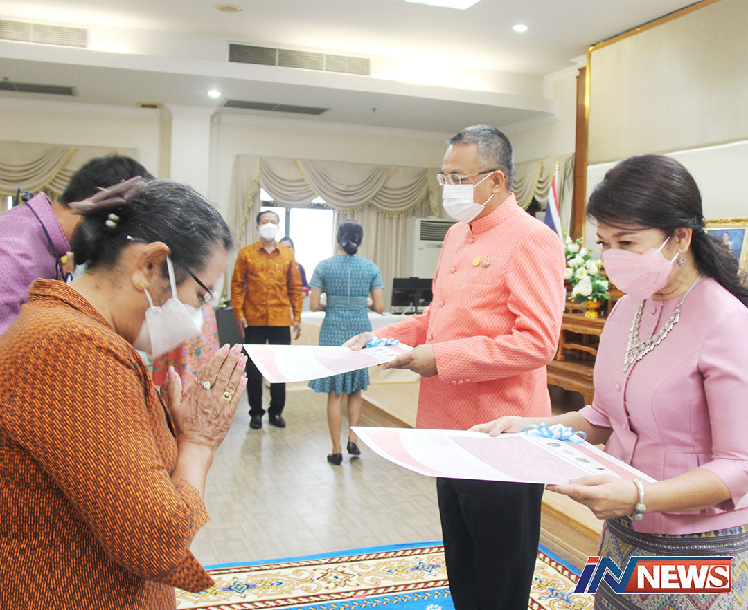สุราษฎร์ฯมอบแบบลายผ้าประจำจังหวัด 'ผ้ายกราชวัตรโคม'ให้19อำเภอสู่ชุมชน