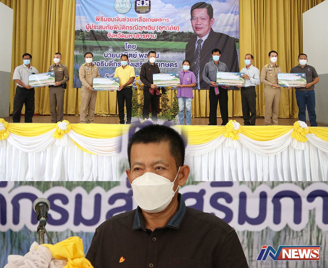 นายนวนิตย์ พลเคน รองอธิบดีกรมส่งเสริมการเกษตร กล่าวว่า การมอบเงินช่วยเหลือเยียวยาในครั้งนี้ ซึ่งคาดหวังว่าเกษตรกรผู้ประสบภัยของจังหวัดมหาสารคาม จะนำเงินที่ได้ ไปบรรเทาความเดือดร้อนจากผลกระทบในชีวิตประจำวัน และบริหารจัดการ เป็นต้นทุนเพื่อการผลิตในฤดูกาลที่จะมาถึง ตลอดจนโครงการต่างๆ ที่เข้าดำเนินการสนับสนุนเกษตรกรหลังน้ำลด เช่น การฟื้นฟูไม้ผล ไม้ยืนต้น การสนับสนุนพืชพันธุ์ดีต่างๆ ให้เกษตรกรนำไปปลูกและเก็บเมล็ดพันธุ์ เพื่อใช้ในการเพาะปลูกในฤดูกาลต่อไป เพื่อลดรายจ่ายและสร้างรายได้ สร้างภูมิคุ้มกันด้านความมั่นคงทางอาหารของครัวเรือน