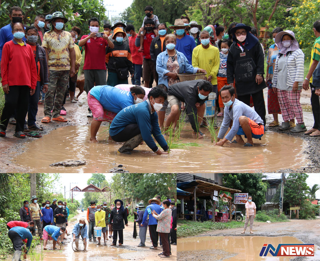 ชาววาปีปทุมสุดทนกับถนนผิวดวงจันทร์ ร่วมกัน'ดำนา-หาปลา'ประชดผู้รับผิดชอบ