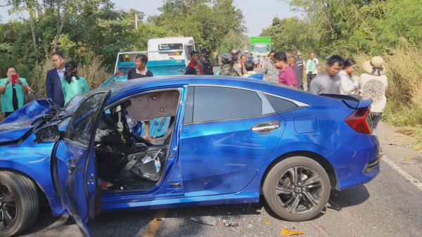 ในที่เกิดเหตุมีชาวบ้านมายืนดูจำนวนมาก พบรถเก๋งยี่ห้อฮอนด้า รุ่นซีวิค สีน้ำเงิน ทะเบียน 8 กน 3183 กทม. สถาพประตูด้านคนขับถูกชนพังยับและกระจกหน้ารถแตก จอดในลักษณะขวางกลางถนน คนขับชื่อ นางสาวมณีรัตน์ จันทรสงเคราะห์ อายุ 24 ปี ชาว ต.หมากแข้ง เขตเทศบาลนครอุดรธานี นักศึกษาฝึกสอนโรงเรียนบ้านตาด ต.บ้านตาด อ.เมืองอุดรธานี ได้รับบาดเจ็บปานกลาง รถกู้ชีพมูลนิธิส่งเสริมธรรม นำตัวส่งรักษาที่ รพ.กรุงเทพอุดรธานี