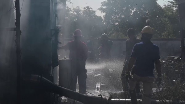 จากการสอบถามนางมารินี ยอดเพชร คนงานภายในโรงงาน บอกว่า วันนี้เป็นวันหยุด แต่มีพนักงานจำนวนหนึ่งยังไม่ได้เลิกงานกะดึก โดยตนได้รับแจ้งจากพนักงานหญิงชาวพม่าที่พบเห็นคนแรกอีกทีหนึ่งว่าเกิดเหตุไฟลุกลามจากกองขยะด้านหลังโรงงาน แต่ยังไม่ทราบแน่ชัดว่าไฟที่ลุกไหม้นั้นเกิดจากอะไร โดยในช่วงเวลา 7.50 น. โดยประมาณ พนักงานหญิงขาวพม่าได้เดินไปเข้าห้องน้ำด้านหลังโรงงาน พบเห็นบุคคลกำลังเผาขยะในถังขนาดเล็ก ตนจึงไม่ได้เอะใจอะไร จนกระทั่งไฟภายในโรงงานดับ ตนเองและพนักงานจึงได้วิ่งไปดูด้านหลังโรงงาน พบว่าไฟได้ลุกลามไปในส่วนต่างๆ เช่น หม้อแปลงไฟฟ้าขนาดใหญ่ เครื่องเผาขยะ และกองเศษพลาสติก และกองพาเลส จำนวนมาก ซึ่งเป็นเชื้อไฟอย่างดี ทำให้ไฟลุกลามอย่างแรง