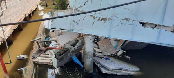 เมื่อเวลา 13.30 น.วันที่ 7 ธ.ค.63 ร.ต.ท.กัลฐวุฒิ แสนสุด พงส.สภ.พระสมุทรเจดีย์ ได้รับแจ้งว่ามีบ้านเรือนประชาชนพังถล่มลงไปในน้ำมีผู้ได้รับบาดเจ็บภายในซอยบ้านปู่ใจ ถนนประชาอุทิศ-คู่สร้าง หมู่ที่ 10 ต.ในคลองบางปลากด อ.พระสมุทรเจดีย์ จ.สมุทรปราการ จึงเดินทางไปตรวจสอบพร้อมด้วย พ.ต.ท.อริญชัย สุวรรณโภชน์ รอง.ผกก.สอบสวนและนาย สุรศักดิ์ ศรีพระราม ผู้ใหญ่บ้านหมู่ที่ 10 ต.ในคลองบางปลากด