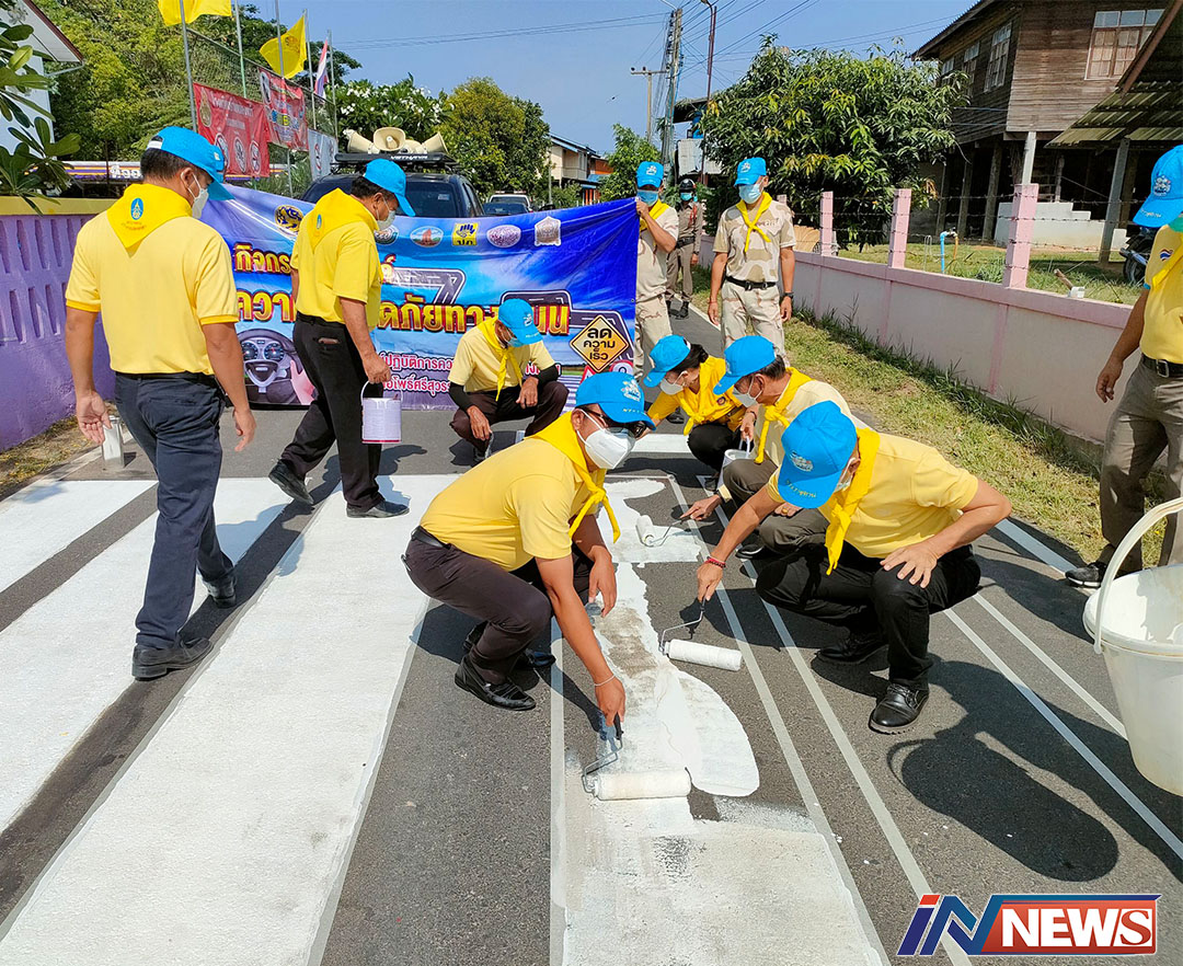 ศรีสะกษ-นายอำเภอโพธิ์ศรีสุวรรณนำจิตอาสาพระราชทานอำเภอโพธิ์ศรีสุวรรณ พัฒนาโรงเรียนบ้านหนองหว้าทาสีทางม้าลายลดและป้องกันอุบัติเหตุทางถนน