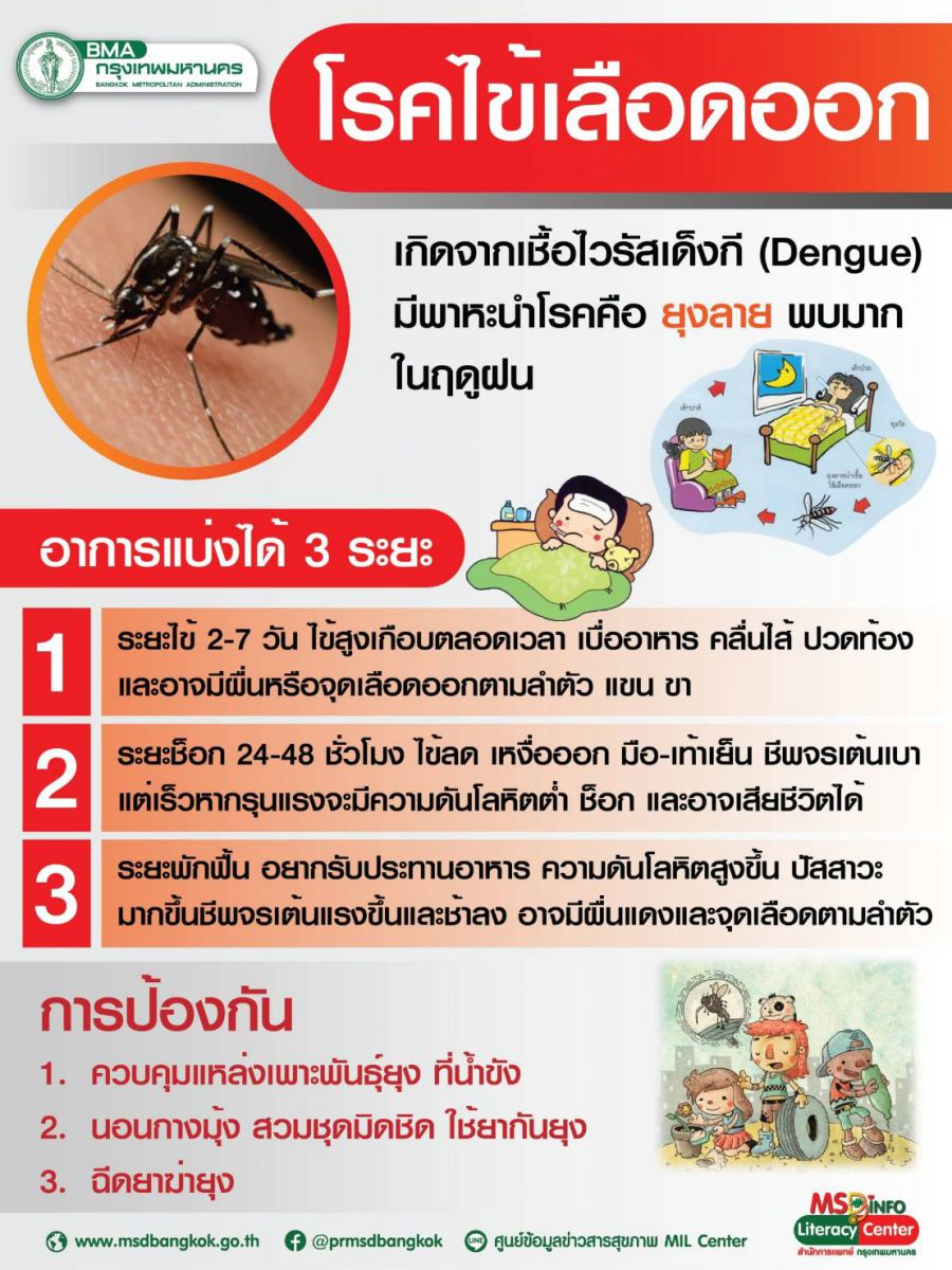 อย่างไรก็ตาม สำนักการแพทย์ได้ให้ความรู้กับประชาชนกลุ่มเสี่ยงที่มารับบริการในโรงพยาบาล (รพ.) สังกัด กทม. รวมถึงประชาสัมพันธ์ผ่านช่องทางออนไลน์เพจสำนักการแพทย์ กทม.และสายด่วนสุขภาพสำนักการแพทย์ เพื่อให้คำแนะนำในการดูแลรักษาสุขภาพ ป้องกันตนเองจากโรคไข้เลือดออก โรคไข้หวัด และโรคโควิด 19 พร้อมแนะนำวิธีการสังเกตและแยกอาการของโรค ได้แก่ การหลีกเลี่ยงไปในสถานที่แออัด ให้สวมหน้ากากอนามัย เพื่อป้องกันตนเองเบื้องต้น และเคร่งครัดมาตรการดูแลสุขอนามัยและความสะอาดภายในบ้านเรือนของตนเองให้เป็นระเบียบเรียบร้อย ไม่ให้เป็นแหล่งหลบซ่อนของยุง เก็บขยะ สำรวจภาชนะต่าง ๆ ไม่ให้มีน้ำขัง รวมถึงชุมชนโดยรอบพื้นที่ รพ.เช่นเดียวกัน เพื่อตัดวงจรการแพร่ระบาดของโรคไข้เลือดออก โรคไข้หวัด และโรคโควิด 19 หากมีอาการป่วย เช่น มีไข้ ไอ มีน้ำมูก เจ็บคอ หายใจเหนื่อยหอบ เบื่ออาหาร ปวดท้อง ซึ่งอาจมีลักษณะคล้ายกันหลายโรค ทั้งไข้หวัด ไข้เลือดออก และโรคโควิด 19 ให้ตรวจหาเชื้อโควิดด้วยชุดตรวจ ATK รับประทานยาตามอาการ หากอาการไม่ดีขึ้นให้รีบพบแพทย์ เพื่อรับการวินิจฉัยโรคและรับการรักษาต่อไป