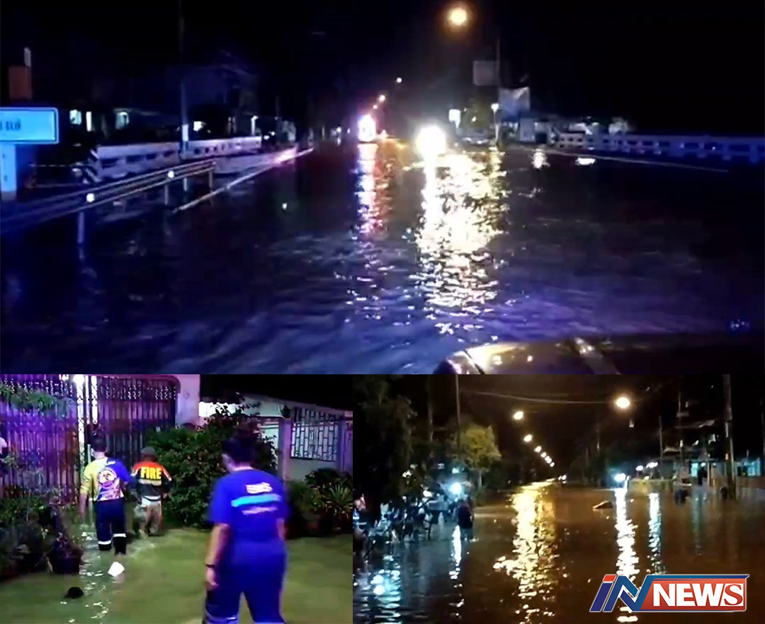 สงขลา-พื้นที่อำเภอสะเดาเกิดฝนตกลงมาอย่างหนัก ทำให้เกิดน้ำท่วมขัง เจ้าหน้าที่กู้ภัยฯช่วยจนของขึ้นที่สูง