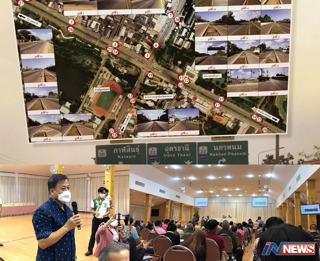 นายประสิทธิ์ สาขา ผอ.แขวงทางหลวงสกลนครที่ 1 กล่าวว่า ความคิดเห็นของชาวบ้านแถวนี้หลากหลายแนวความคิดเห็น ส่วนมากมีความคิดอยากจะให้สร้างสร้างแต่ว่าตอนก่อสร้างเราอยากให้คิดนึกถึงผลกระทบของชาวบ้านที่ทำการค้าการขายอยู่สองข้างทางที่จะมีผลกระทบต่อวิถีชีวิตของเขาหรือไม่สำหรับแบบการสำรวจมีอยู่ 3 แบบ แบบที่ 1 สะพานข้ามแยกสัญญาณไฟ แบบที่ 2 สะพานข้ามแยกวงเวียน แบบที่ 3 ทางลอดสัญญาณไฟ ใช้งบประมาณ 500-900 ล้านบาท อย่างไรก็ตามการประชุมวันนี้เป็นจุดเริ่มต้นซึ่งยังจะมีการศึกษาอีกต่อไปและจะจัดขึ้นอีก จนสามารถได้ข้อสรุปอีกครั้งโดยยึดโยงประชาชนเป็นที่ตั้ง.