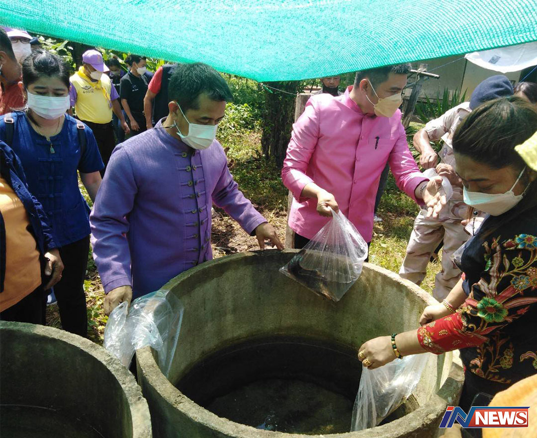 5.นายสมยศ คงทอง พัฒนาการอำเภอดอนสัก มอบพันธุ์ปลาดุก จำนวน 5 ตัว