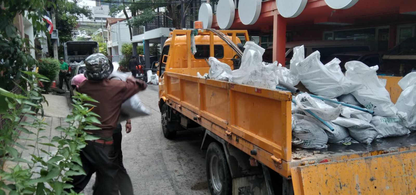 จุดแรก ถนนพระราม9 ซอย26-4 (100ห้อง) พบว่ามีน้ำท่วมขังและท่อระบายน้ำมีขยะปฏิกูล ไขมัน อุดตันและให้เจ้าหน้าที่ลอกท่อนำขยะและสิ่งปฏิกูลขึ้น เพื่อระบายน้ำที่ท่วมขัง ซึ่งสามารถเปิดทางน้ำไหลได้สะดวกขึ้น