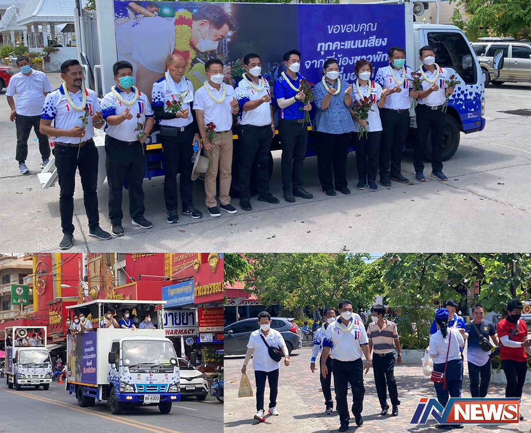 ทั้งนี้ ขบวนรถแห่ได้เริ่มขอบคุณประชาชนจากพื้นที่เขตเลือกตั้งที่ 1 บริเวณหน้าร้านปลาทองซีฟู้ด นาเกลือ ก่อนเคลื่อนขบวนไปยังชุมชนชนต่างๆ ก่อนไปสิ้นสุดที่วัดหนองใหญ่ จากนั้นได้เคลื่อนขบวนรถแห่ไปขอบคุณประชาชนพื้นที่เขตเลือกตั้งที่ 2