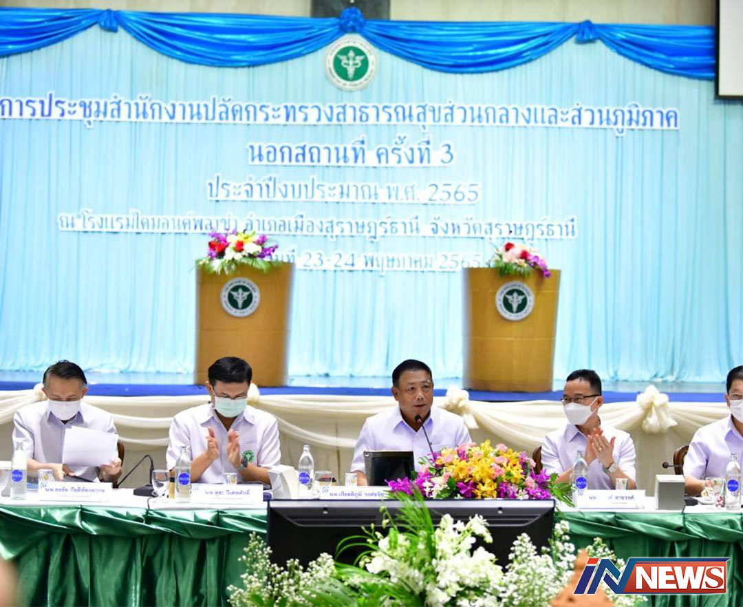 สุราษฏร์ธานี-ปลัดกระทรวงสาธารณสุข เผยสถานการณ์โควิด 19 ดีขึ้นต่อเนื่อง คาดเข้าสู่การเป็นโรคประจำถิ่นตามกำหนด ให้หน่วยงานสาธารณสุขนำร่องกิจกรรมในการใช้ชีวิตอยู่ร่วมกับโควิด 19 อย่างปลอดภัย เพื่อสร้างความมั่นใจกับประชาชน พร้อมทั้งส่งเสริมการนำกัญชามาใช้ประโยชน์ในครัวเรือนและพัฒนาเป็นผลิตภัณฑ์สุขภาพต่อยอดทางเศรษฐกิจ