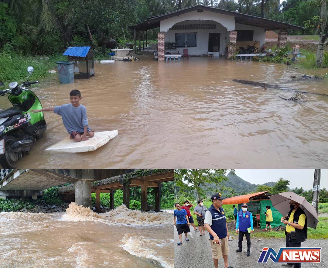 พังงาฝนตกหลายวันได้ไหลท่วมบ้านเรือน จมแล้ว2หลังอีก12หลังน้ำเริ่มเอ่อล้น