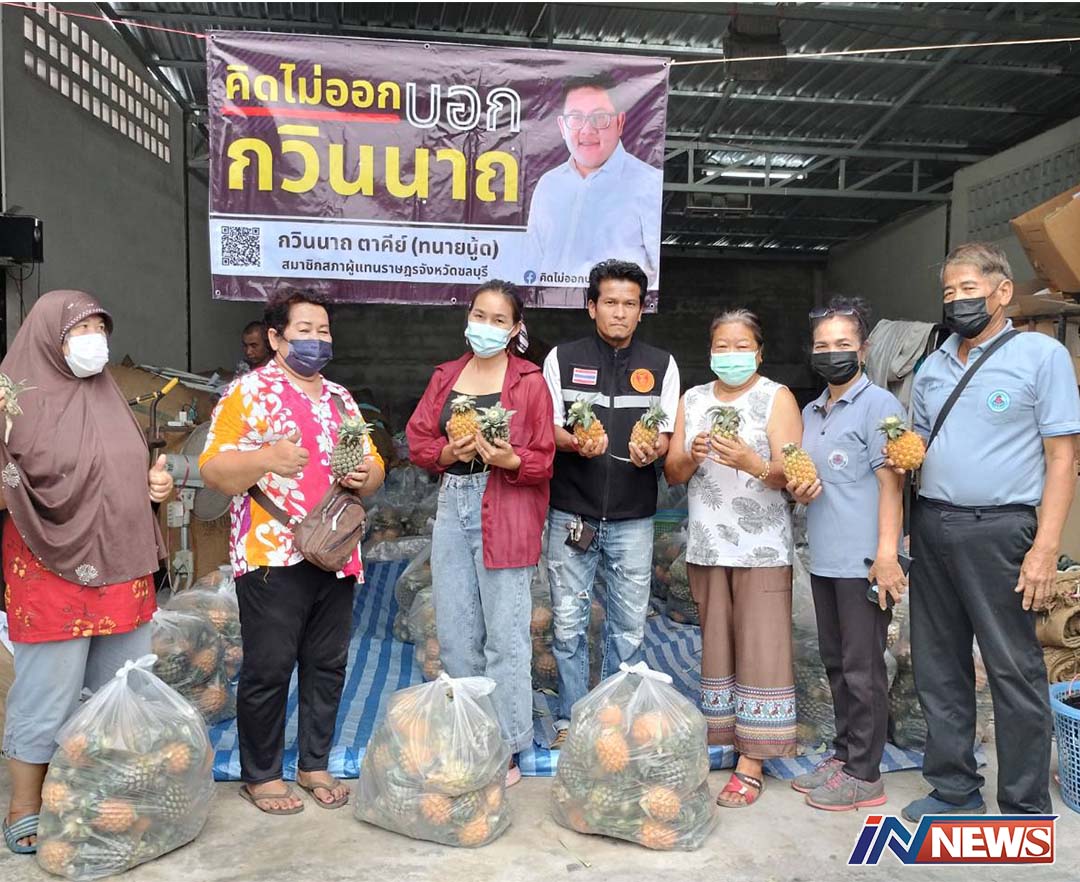 ชลบุรี-ส.ส.นู้ด-กวินนาถ ช่วยเกษตรกรสับปะรดหลังราคาตก เหมาผลผลิต 4 ตัน แจกจ่ายชาวบ้านบางละมุง