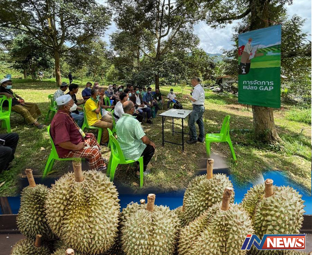 ยะลา-7 กรกฎาคม 2565 – สำนักวิจัยและพัฒนาการเกษตรเขตที่ 8 กรมวิชาการเกษตร ร่วมกับ สมาคมการค้านวัตกรรมเพื่อการเกษตรไทย มูลนิธิปิดทองหลังพระสืบสานแนวพระราชดำริ สมาคมทุเรียนใต้ มหาวิทยาลัยเกษตรศาสตร์ กรมส่งเสริมการเกษตร กรมการปกครองอำเภอรามัน องค์การบริหารส่วนตำบลกาลอ จัดการอบรมเชิงปฏิบัติการ การทำการเกษตรที่ดีและเหมาะสม (GAP) เพื่อเพิ่มคุณภาพผลผลิตทุเรียน ให้กับเกษตรกรสามจังหวัดชายแดนภาคใต้ โดยมีเป้าหมายสร้างความเข้าใจ พัฒนาทักษะความรู้ระบบปลูกทุเรียนให้มีมาตรฐานความปลอดภัย และหาแนวทางในการแก้ปัญหาศัตรูพืชที่สำคัญของทุเรียน โดยเฉพาะหนอนเจาะทุเรียน ที่ส่งผลให้ผลผลิตทุเรียนมีราคาตกต่ำ เพื่อการเตรียมความพร้อมให้แก่เกษตรกรชาวสวนทุเรียน เป็นส่วนหนึ่งของการขับเคลื่อนภาคการเกษตรของประเทศไทย ให้มีศักยภาพพร้อมสู่การแข่งขันในตลาดโลก โดยมีเกษตรกรชาวสวนทุเรียนภายใต้ 17 วิสาหกิจชุมชน จำนวนมากกว่า 100 คน