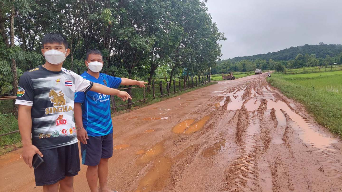 ผู้สื่อข่าวรายงานว่า นายกิตติพงษ์ นารีนุช อายุ 18 ปี นักเรียนชั้น ม. 6 บ้านเลขที่ 83 หมู่ 7 ตำบลนาโสก อำเภอเมือง จังหวัดมุกดาหาร พร้อมด้วยนาย รุ่งสุริยา น้อยหลานเมือง นักเรียนชั้น ม. 5 อายุ 17 ปี บ้านเลขที่ 102 หมู่ 7 ตำบลนาโสก อำเภอเมือง จังหวัดมุกดาหาร เด็กนักเรียนขับรถจักรยานยนต์ลื่นล้มทำให้ชุดนักเรียนเปื้อนโคลน ซึ่งถนนดังกล่าวเป็นถนนระหว่างหมู่บ้านห้วยละโมง ตำบลคำบก อำเภอคำชะอี จังหวัดมุกดาหาร ไปถึง บ้านโคกป่งเปือย ตำบลนาโสก อำเภอเมืองมุกดาหาร ระยะทางประมาณ 8 กิโลเมตร ซึ่งเป็นถนนที่ใช้สัญจรระหว่างหมู่บ้านจำนวน 4 หมู่บ้าน ประกอบกด้วย บ้านโคกป่งเปือย บ้านห้วยละโมง บ้านคำบก และบ้านบาก ประชากรกว่า 2,000 คน ที่ใช้สัญจรไป-มาเส้นทางนี้