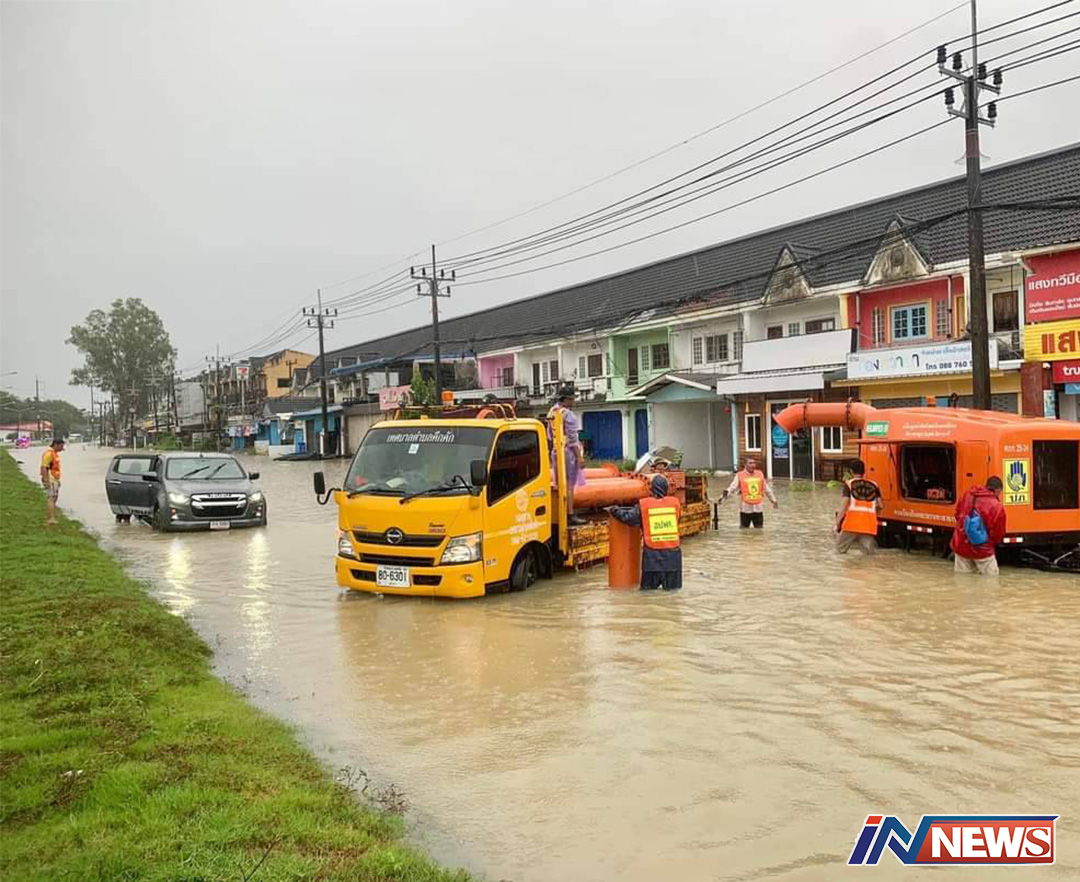 พังงา-ปภ.พังงา เข้าช่วยชาวบ้านบางเนียงเร่งติดตั้งเครื่องสูบน้ำระบายน้ำท่วมขังผิวจราจรถนนสายหลัก
