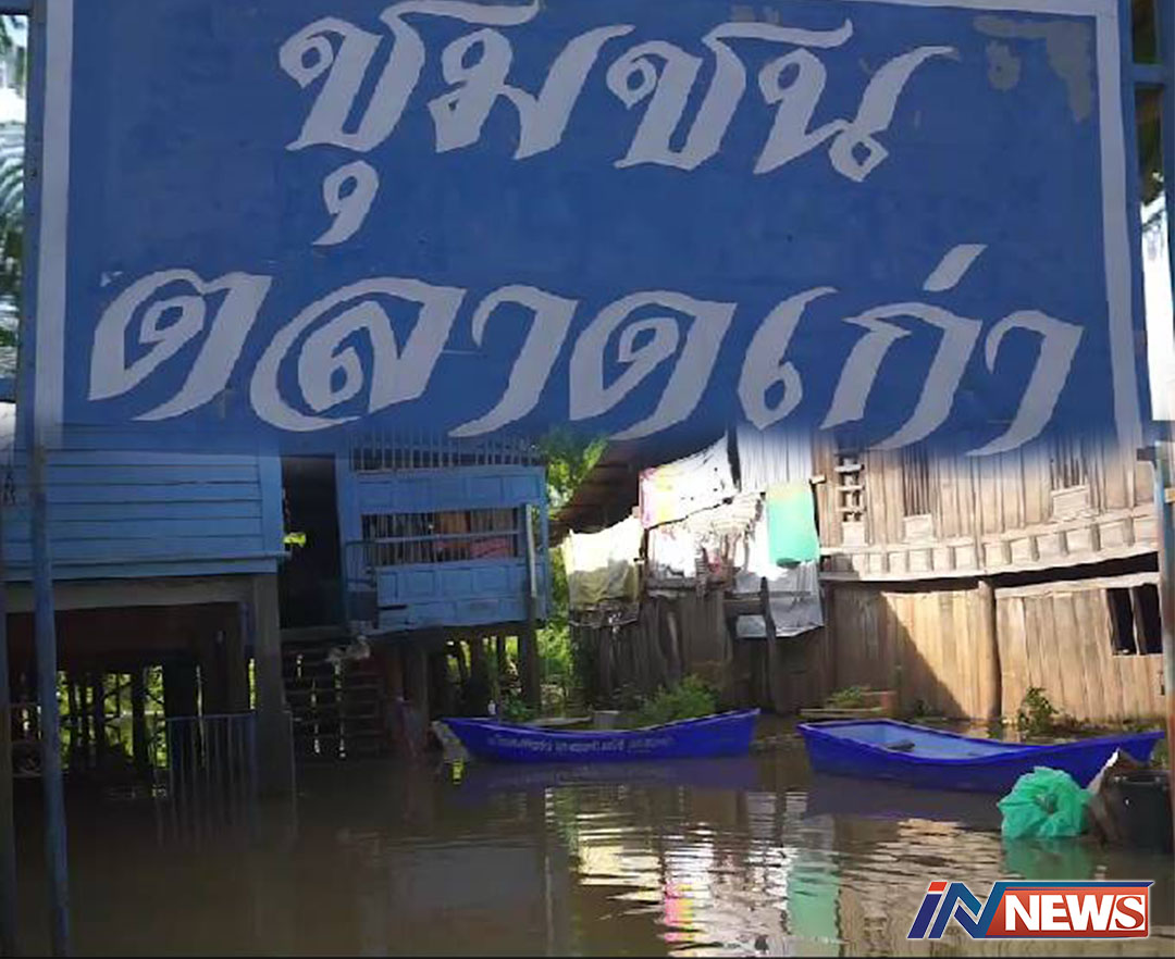 จุดแรกกลางชุมชนตลาดเก่า น้ำเอ่อเข้าท่วมบ้านเรือนประชาชนรวมจำนวน 10 ครัวเรือน ระดับน้ำสูง 15-20 ซม.ระยะทางยาวมากกว่า 50 เมตร ประชาชนเก็บข้าวของขึ้นบนชั้นที่2 เพื่อความปลอดภัย ซึ่งบ้านเรือนแถบนี้ส่วนใหญ่เป็นบ้านไม้เก่าแก่อายุกว่า 100 ปี ตั้ง 2 ชั้นหนีน้ำ ที่ท่วมในทุก ๆปี และพบแต่ละบ้านต่างมีเรือเตรียมพร้อมไว้ทุกบ้านในการใช้สัญจรหากน้ำท่วมหนัก