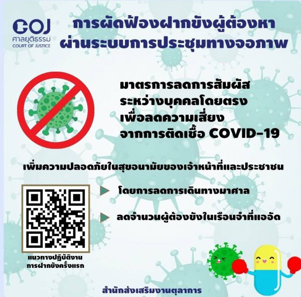 ทั้งนี้งานด้านคดีสำคัญอีกส่วนที่เรานำ VDO Conference มาใช้เพื่อความสะดวก และลดความเสี่ยงการสัมผัสระหว่างบุคคล ก็คือการอ่านคำพิพากษาหรือคำสั่งของศาลชั้นต้น ซึ่งช่วงที่มีสถานการณ์แพร่ระบาดเชื้อไวรัสโควิดอย่างหนักช่วงแรกในเดือน มี.ค.- พ.ค.63 มีคดีที่อ่านคำพิพากษา/คำสั่ง กว่า 5,000 คดี และศาลสูงในส่วนศาลฎีกาสถิติการอ่านคำพิพากษาและคำสั่งในคดีอาญาผ่านคอนเฟอเรนซ์ ที่เริ่มดำเนินการครั้งแรกตั้งแต่ มิ.ย.63 - ธ.ค.63 ประมาณ 20 คดี โดยการคอนเฟอเรนซ์เป็นกรณีที่อ่านคำพิพากษาหรือคำสั่งของศาลต้นทาง กับเรือนจำที่จำเลยถูกคุมขังอยู่ ซึ่งเป็นรักษาระดับความปลอดภัยด้านสุขอนามัยให้ทั้งจำเลยที่ต้องขัง และเจ้าหน้าที่ศาล เจ้าหน้าที่ราชทัณฑ์ ที่ไม่ต้องเบิกตัวจำเลยเข้า-ออกนอกสถานที่คุมขังช่วงที่ต้องเฝ้าระวังการแพร่ระบาดเชื้อโควิดอย่างเข้มงวดนี้