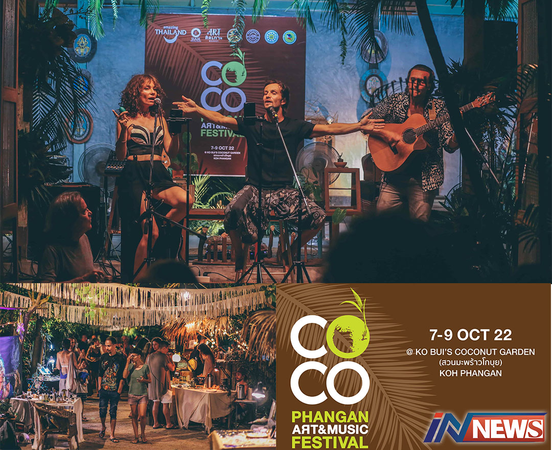 สุราษฏร์ธานี-เกาะพะงัน สุราษฎร์ธานี เปิดตัวโครงการ “COCO Phangan Art & Music Festival” เทศกาลศิลปะและดนตรีในสวนมะพร้าว เชิญชวนนักท่องเที่ยวไทยและชาวต่างชาติสัมผัสประสบการณ์ท่องเที่ยวแนวใหม่ร่วมเสพงานศิลปะ ดนตรี และวิถีท้องถิ่น หนุนปลุกกระแสท่องเที่ยวและเศรษฐกิจชุมชนให้กลับมาสดใสอีกครั้ง งานจัดขึ้นในวันที่ 7-9 ตุลาคม 2565 นี้ ที่ เกาะพะงัน จังหวัดสุราษฎร์ธานี