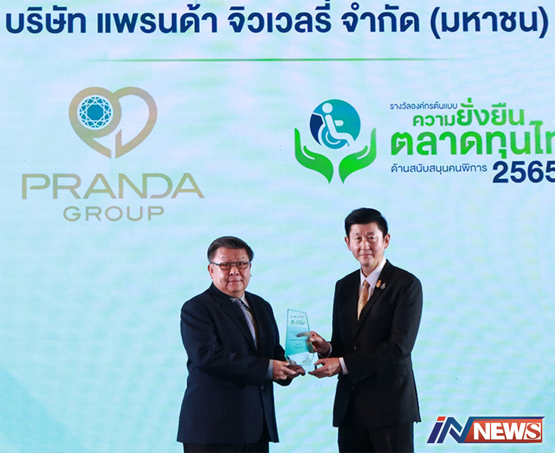 'แพรนด้าฯ'รับรางวัลองค์กรต้นแบบยั่งยืน ในตลาดทุนไทยหนุนคนพิการดีเด่นปี65