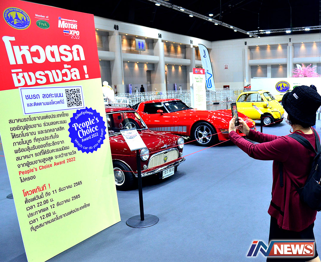กรุงเทพฯ-สมาคมรถโบราณแห่งประเทศไทย เชิญผู้ชมงาน “มหกรรมยานยนต์ ครั้งที่ 39” ร่วมลงคะแนนโหวตให้รถโบราณ และรถคลาสสิคที่ประทับใจ ภายในบูธของสมาคมฯ พร้อมลุ้นรับของที่ระลึก รถที่ได้รับคะแนนนิยมจากผู้ชมงานสูงสุด จะคว้ารางวัล People’s Choice Award 2022 ไปครอง โดยเปิดให้โหวตถึงวันอาทิตย์ที่ 11 ธันวาคม 2565 เวลา 22.00 น. และประกาศผลวันจันทร์ที่ 12 ธันวาคม 2565 เวลา 12.00 น.