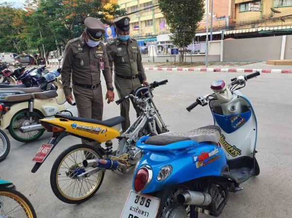 ซึ่งได้ดำเนินการกับบุคคลที่มีพฤติกรรมเสี่ยง ในช่วงระหว่างวันที่ 29 -31 มกราคม 2564 ตรวจยึดรถจักรยานยนต์จำนวนทั้งสิ้น 27 คัน เป็นบุคคลอายุระหว่าง 18 – 40 ปี จำนวน 15 ราย เยาวชนอายุระ หว่าง 12 - 18 ปี จำนวน 12 ราย แยกความผิดตามข้อ หาดังนี้ ท่อเสียงดัง จำนวน 20 คัน ไม่ติดแผ่นป้ายทะ เบียน 8 จำนวน คัน อุปกรณ์ส่วนควบไม่ครบถ้วนจำนวน 4 คันไม่มีใบอนุญาตขับขี่ จำนวน 12 ราย ดัดแปลงสภาพรถ จำนวน 3 คันไม่แสดงสำเนาคู่มือจดทะ เบียน จำนวน 5 คัน